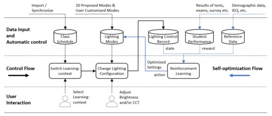 - Lee, H.-S.; Kwon, S.-Y.; Lim, J.-H. A Development of a Lighting Control System Based on Context-Awareness for the Improvement of Learning Efficiency in Classroom. Wirel. Pers. Commun. 2016, 86, 165–181. [Google Scholar] [CrossRef]