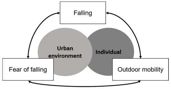 - Does new evidence support the conceptualisation of reciprocal and complex relationships between falling, fear of falling and outdoor mobility, and the contribution of urban environments and individual risk factors (Figure 1)