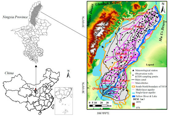 Mi, L.; Tian, J.; Si, J.; Chen, Y.; Li, Y.; Wang, X. Evolution of Groundwater in Yinchuan Oasis at the Upper Reaches of the Yellow River after Water-Saving Transformation and Its Driving Factors. Int. J. Environ. Res. Public Health 2020, 17, 1304. https://doi.org/10.3390/ijerph17041304