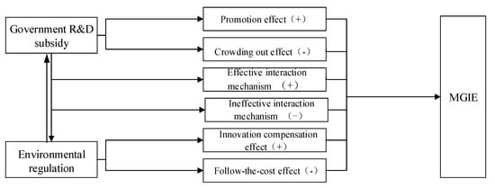 2.3. Mechanism of the Joint Effect of R&D Subsidies and Environmental Regulation on MGIE