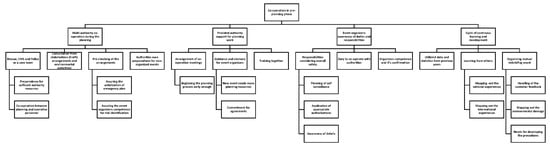 Three main categories emerged from the material: (1) co-operation in the pre-planning phase, (2) factors to be noted in the emergency plan, and (3) actions during the event. These main categories were divided into sub-categories (Figure 1), which were further divided into multiple generic categories (Figure 2, Figure 3 and Figure 4).