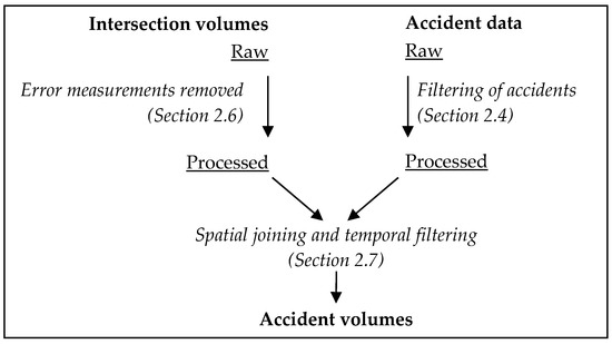Figure 2 summarises the process by which intersection traffic volumes were joined to traffic accident records with reference to the relevant methods sections.