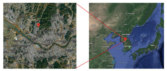 Samples were collected from the rooftop of Korea Environmental and Technology Institute (37°61′ N, 126°93′ E) located in Seoul, South Korea. The sampling site was adjacent to a road in the south, a residential area in the north, and Mt. Bukhansan in the northeast. Figure 1 is a map of the sampling site.