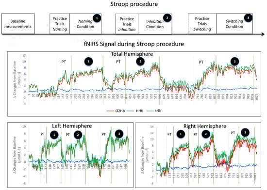 The typical response of cerebral oxygenation during the Stroop procedure is presented in Figure 3.