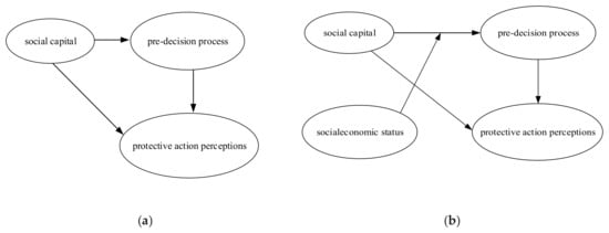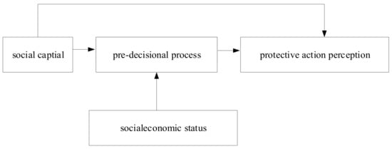 Socioeconomic status reflects the social evaluation of the comprehensive values of individuals. It is found for example, that the physical health risks and social risks are different among people with different socioeconomic statuses; the distribution of environmental risk is reversely overlapping with wealth and power distribution to some extent []. Also, education, income, and other socioeconomic status factors could have an important impact on the relationship between social capital and pre-decision process: As for individuals of similar social capital structures, the higher their education level is, the more capable they are in extracting social capital resources and taking practical actions; the higher their income level is, the more they would focus on the safety of their own property [,]. It can be said therefore that, different socioeconomic status can have different influences on the protective action perceptions of urban residents. Thus, hypothesis 3 was raised as: