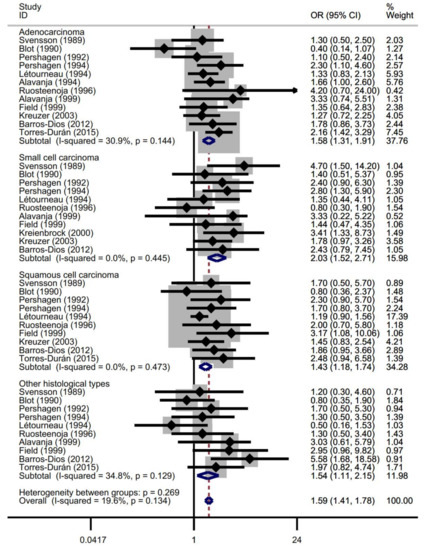 The following are available online at https://www.mdpi.com/1660-4601/17/4/1457/s1, Figure S1: Funnel plots for the meta-analyses: overall pooled analysis, Figure S2: Funnel plots for the meta-analyses: histology subgroup analyses, Table S1: strategies of electronic database searches.