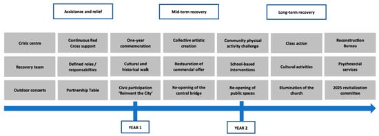 Figure 1). More precisely, they were first divided in subgroups, where they had to highlight good moves, or successful interventions and initiatives implemented by local partners and citizens since the tragedy. Then, subgroups had to share their respective thoughts to the larger group in order to collectively construct the timeline. By doing so, the large group was able to identify a wide and diversified range of local assets, including physical, cultural, economic, social and spiritual ones, that all created positive effects on the community.