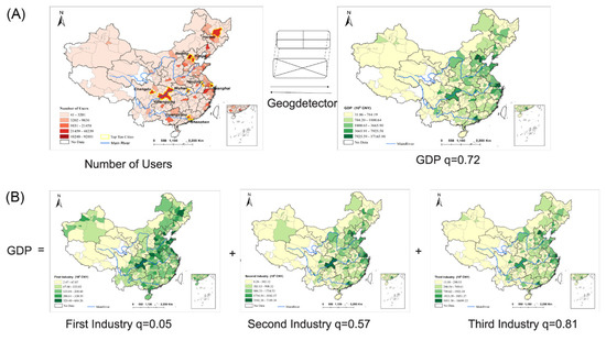 In order to quantify the effects of economic factors on the spatial distribution of the MSM population, the geodetector [21] method was used to analyze the relationship between the number of MSM users and the economic factors in geographical space.