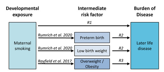 Rumrich IK, Vähäkangas K, Viluksela M, Hänninen O. Chained Risk Assessment for Life-Long Disease Burden of Early Exposures–Demonstration of Concept Using Prenatal Maternal Smoking. International Journal of Environmental Research and Public Health. 2020; 17(5):1472. https://doi.org/10.3390/ijerph17051472