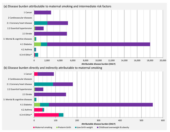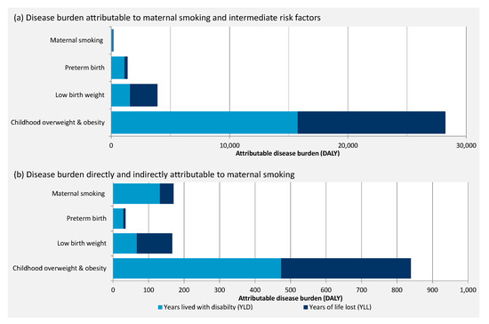 | Indirectly attributable to maternal smoking (%) | 3 % | 4 % | 3 % | 4 % | ||||