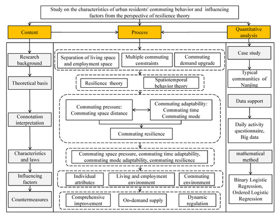 An analytical framework of urban residents’ commuting behavior characteristics and influencing factors from the perspective of resilience theory.