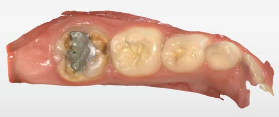 - Mangano, F.; Gandolfi, A.; Luongo, G.; Logozzo, S. Intraoral scanners in dentistry: A review of the current literature. BMC Oral Health 2017, 17, 149. [Google Scholar] [CrossRef] [PubMed]