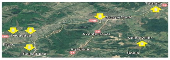 The polluters on the industrial platform were present mainly in the valley of the Târnava Mare river being scattered to the West (village of Micăsasa and city of Blaj), the East (city of Mediaş and town of Dumbrăveni), or South in the direction of the Șomârd-Şoala villages [45]. The preferential circulation of the air masses guided by the orography of the land resulted in the accumulation of significant amounts of Pb and Cd in the honey sampled from the localities of Târnava (located east of the main polluter) and Valea Viilor (southeast of Copşa Mică). The analytical values of Zn and Cu are above those determined in the honey sampled in the town of Copşa Mică, which supports the model of the remote dispersion of pollutants and the importance of the role of orography.
