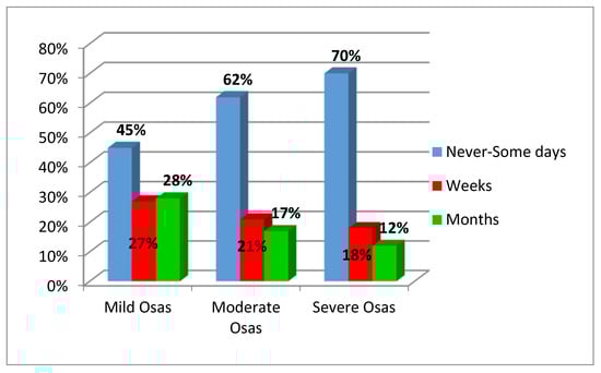 | No N/% | Mild N/% | Moderate N/% | Severe N/% | |