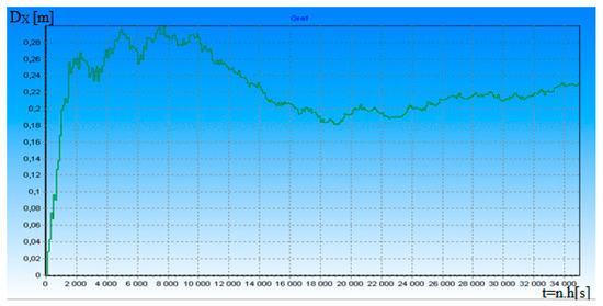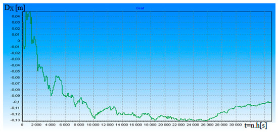 D2 of error measurement of the slant range D(t) between FO and DME, on time t = n × h [s], where h = 1 × 10