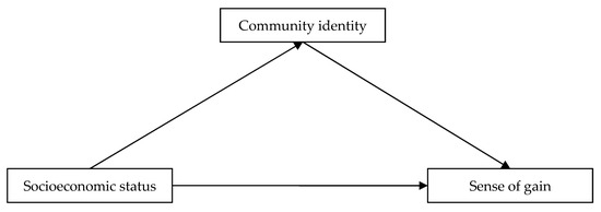 Basic model of the relationship between socioeconomic status and sense of gain as mediated by community identity.