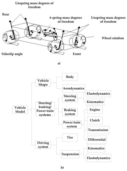 (a) 27-Degree of Freedom (DOF) Vehicle Model. (b) CarSim Vehicle Structure.