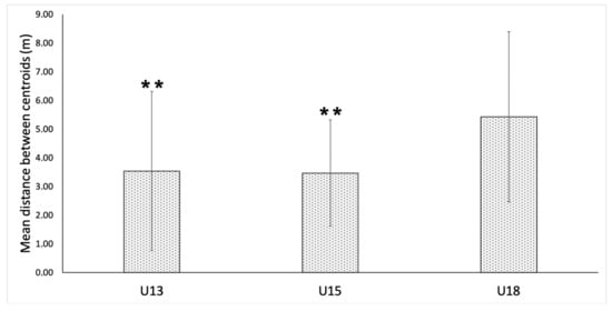 - Folgado, H.; Lemmink, K.A.P.M.; Frencken, W.; Sampaio, J. Length, width and centroid distance as measures of teams tactical performance in youth football. Eur. J. Sport Sci. 2014, 14, S487–S492. [Google Scholar] [CrossRef] [PubMed]