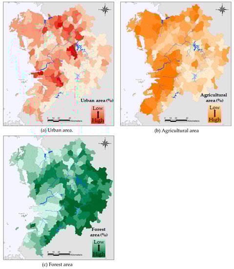 | Agricultural area (%) | 43.62 | 18.81 | 12.12 | 86.04 | |