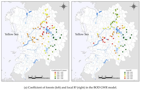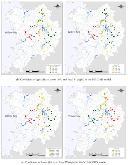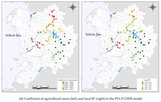 - Huang, J.; Huang, Y.; Pontius, R.G.; Zhang, Z. Geographically weighted regression to measure spatial variations in correlations between water pollution versus land use in a coastal watershed. Ocean Coast. Manag. 2015, 103, 14–24. [Google Scholar] [CrossRef]