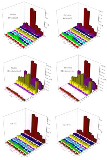 If the HI value is less than 1.0, the exposed individual is unlikely to experience obvious adverse health effects. Otherwise, when HI values exceed 1.0, noncarcinogenic risk may occur [,].