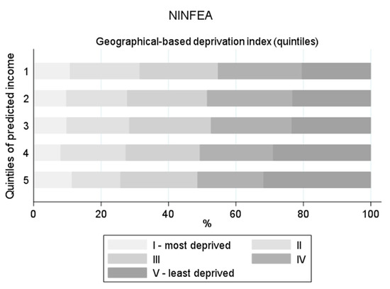Distribution of the SEP-related variables available in the NINFEA cohort by quintiles of the predicted income.