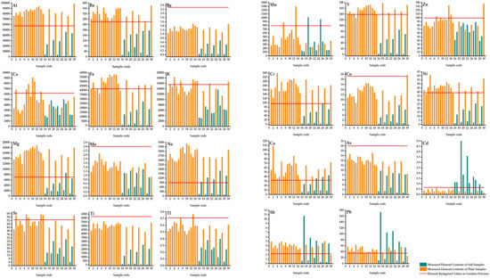| Element | Soil Samples | Plant Samples | Comparison with Related Studies | |||||||||||