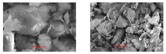Figure 3 shows morphology images from our previous work, which used sodium dodecylbenzene sulfonate (SDBS) to modify sepiolite [2]. It confirms that the original crystal structure of sepiolite was kept. A loose structure and smooth interval was obtained after the SDBS modification. In this study, the CTAB modification was utilized, and, based on the previous work and X-ray diffraction spectra, the CTAB probably modified the surface of sepiolite with the dominated mechanism of electrostatic attraction and ion exchange.