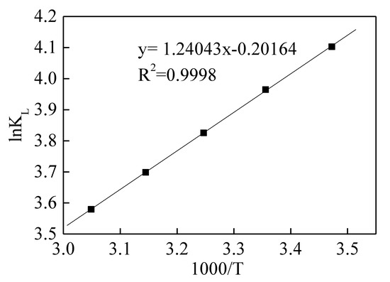 where T is the absolute temperature, KL is the Langmuir equilibrium constant, R is the ideal gas constant, (8.314 J/mol·K).