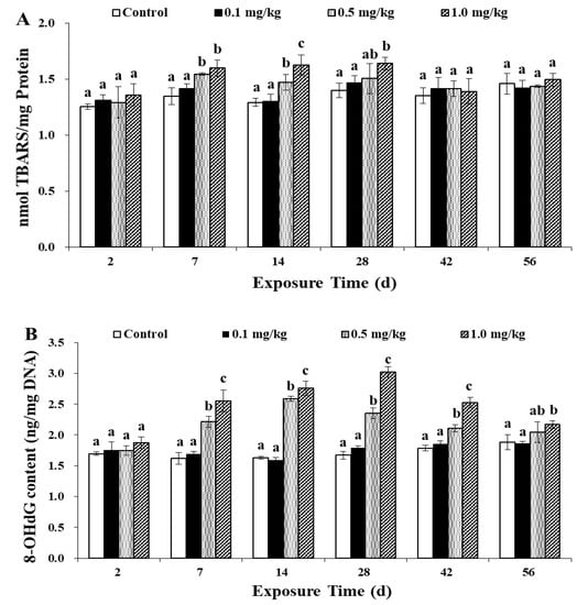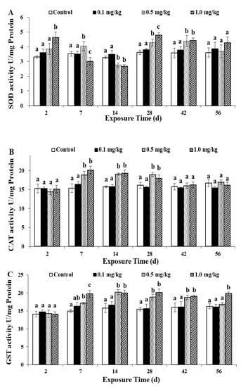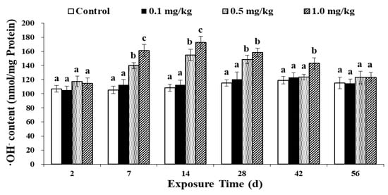 - The changes in the activity or content of each biomarker in 0.5 mg/kg and 1.0 mg/kg treatment demonstrated that sulfoxaflor caused oxidative damage at the early stage of exposure. At the end of exposure, the toxic effects were reduced due to the degradation of sulfoxaflor.