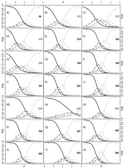 - Brzezińska, J. A polytomous item response theory models using R/Politomiczne modele teorii odpowiedzi na pozycje testowe w programie R. Ekonometria 2016, 2, 43–53. [Google Scholar] [CrossRef]
