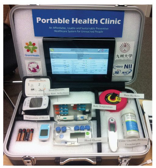 - Ahmed, A.; Inoue, S.; Kai, E.; Nakashima, N.; Yasunobu, N. Portable Health Clinic: A Pervasive Way to Serve the Unreached Community for Preventive Healthcare; Springer: Berlin/Heidelberg, Germany, 2013; pp. 265–274. [Google Scholar]