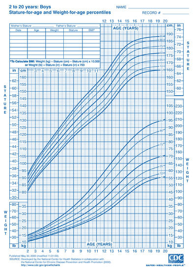 Clinical growth of boys measured by CDC (Age: 2–20 years) [2].