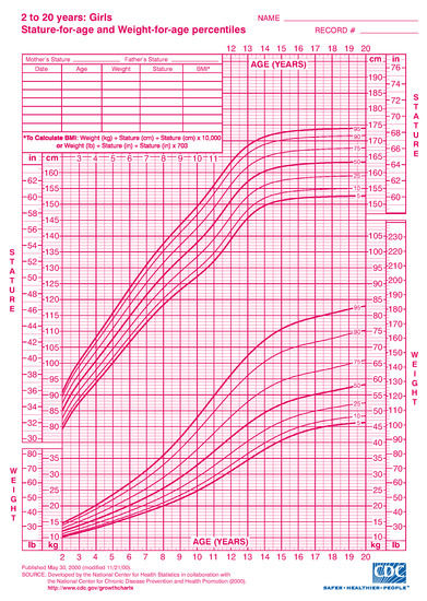 Clinical growth of girls measured by CDC (Age: 2–20 years) [2].