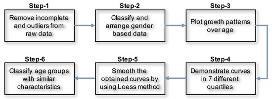 The total number of records that we analyzed is N = 13,932 for male. However, this data has not been collected from the same location or from the same persons. Therefore, personal growth pattern cannot be observed. On the other hand, the data was not collected from the same location. Therefore, we cannot observe the geo-location characteristics from the data. As mentioned above, we worked on very dirty data randomly collected from different locations in Bangladesh since 2010, in different time. The other weakness of this data is that the archive does not have many follow up patients. In order to find the growth pattern, we followed a statistical process mentioned in Section 3.