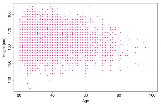 In our case analysis, we focused on male’s height to see the growth characteristics. We followed the guideline of the popular CDC growth charts and drew the height pattern of each age from 20 to 100. CDC reports growth characteristics for only 0–20 years old boys and girls. However, growth for adults after 20 has neither been widely studied, nor reported.