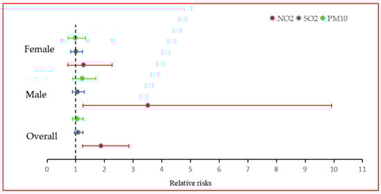 | PM10 | 0.9841 (0.9361 to 1.0349) | 0.9724 (0.8790 to 1.0742) | 1.0685 (0.9930 to 1.1502) * |