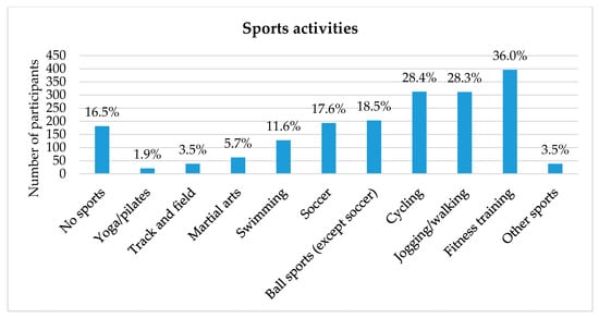 Sports activities of sample participants. Multiple responses were possible (n = 1100).