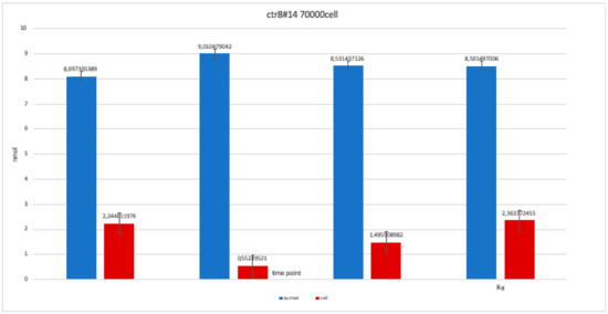 The nanomolar concentration analyzed in the graphs (Table 2) showed that staining was positive for ALP after 14 days in all clones; this was maintained at 21 and 28 days without changes in trends (Figure 11, Figure 12, Figure 13, Figure 14 and Figure 15).