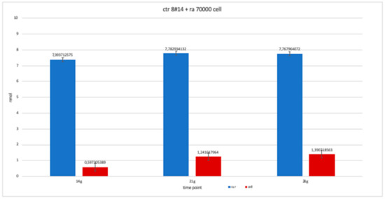 The trend of clone + RA has been studied for the availability of 14, 21 and 28 day cell numbers. The graph is more similar to clone 8-ra, with a trend that is more constant over time than clone 2 and 4.