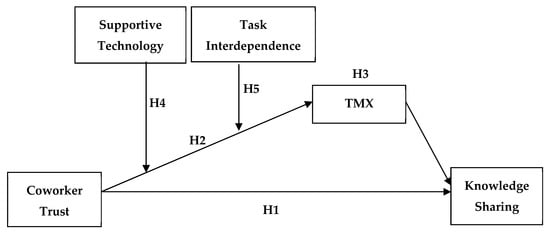 Dirks and Ferrin [74] suggested that the role of trust varies depending on the situational structure (i.e., the amount of uncertainty or ambiguity in an event). Task interdependence facilitates better relations among team members because when there is more interaction when tasks are interlinked, employees need to learn from each other to accomplish the tasks. Kozlowskiet al. [75] found that task interdependence impacts team processes, since it shapes the coordination requirements and the roles that team members play. On the basis of previous studies, we posit that task interdependence will moderate the relationship between trust and TMX.