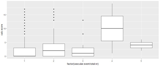 Due to non-normality distribution of our data we used nonparametric tests (Kruskal–Wallis test) for comparison between categorical and interval variables. Fisher-exact test was used for categorical variables. When testing for association between total vascular events and calcium score, we used analysis of variance (ANOVA) with Tukey’s honestly significant difference (HSD) correction. Cox-proportional hazard model was employed to test for factors that may be associated with stroke recurrence, vascular event, and death due to any cause. We set a P-value below 0.05 as cut-off value for statistical significance. All statistical analysis was performed using R software [18].