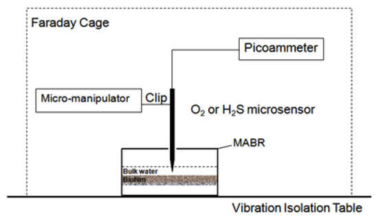 - Santegoeds, C.M.; Schramm, A.; de Beer, D. Microsensors as a tool to determine chemical microgradients and bacterial activity in wastewater biofilms and flocs. Biodegradation 1998, 9, 159–167. [Google Scholar] [CrossRef]