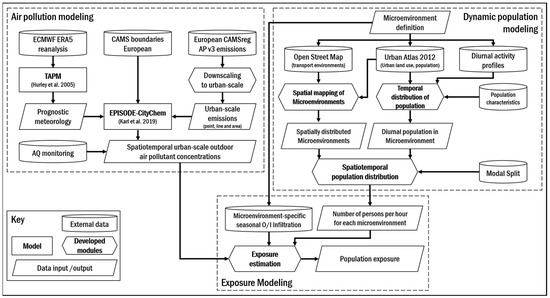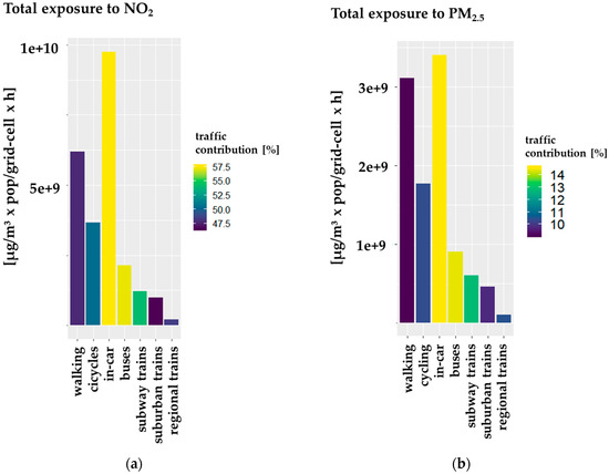 Population exposure estimations are based on air concentration levels in the environments where people spend their time, and the amount of time they spend within them [22]. Thus, it is important to take into account both realistic pollution levels and population time–activity.