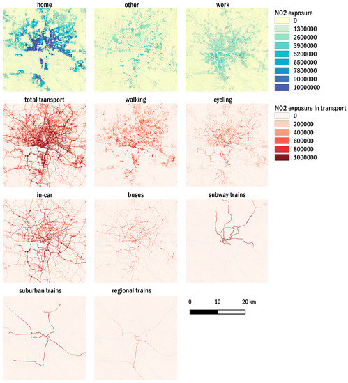 - Reis, S.; Liška, T.; Vieno, M.; Carnell, E.J.; Beck, R.; Clemens, T.; Dragosits, U.; Tomlinson, S.J.; Leaver, D.; Heal, M.R. The influence of residential and workday population mobility on exposure to air pollution in the UK. Environ. Int. 2018, 121, 803–813. [Google Scholar] [CrossRef]
