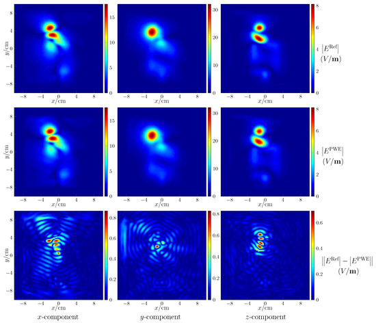 Field reconstruction with respect to the seventh case, denotes the amplitude of electric field, the amplitude of spectrum, and the superscript “PWE”, “Ref” indicate the reconstructed field and the reference field, respectively.