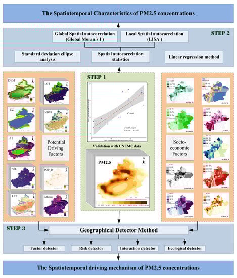 Wang, W.; Samat, A.; Abuduwaili, J.; Ge, Y. Spatio-Temporal Variations of Satellite-Based PM2.5 Concentrations and Its Determinants in Xinjiang, Northwest of China. Int. J. Environ. Res. Public Health 2020, 17, 2157. https://doi.org/10.3390/ijerph17062157