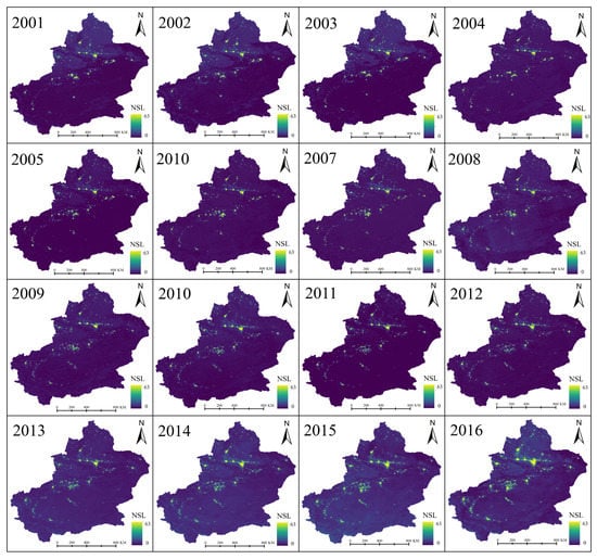 | NSL | DMSP-OLS (2001–2013) /NPP-VIIRS (2013–2016) | 1000 m/500 m | 1 year/ 1 month |