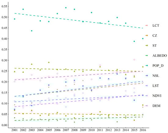3.3. Interannual Variation of Potential Driving Factors for PM2.5 Concentrations