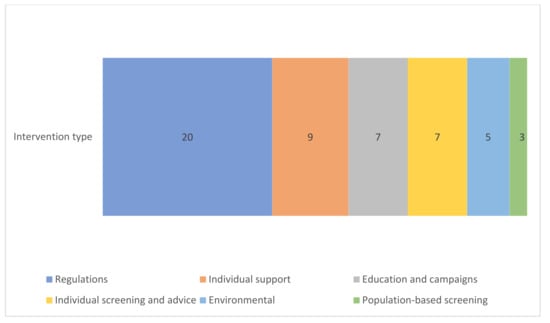 | Tobacco use | Financing of stop support by health insurance | Individual screening and advice | The reimbursement of an integrated smoking cessation program, consisting of a combination of behavioral counselling and pharmacotherapy [59] |